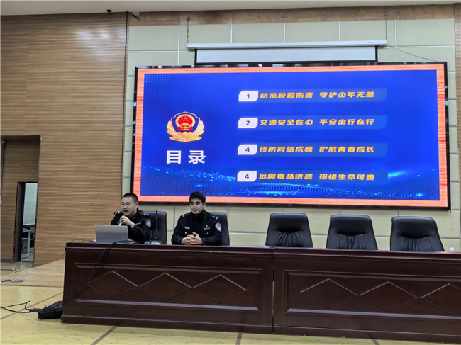 交通安全板块里,颜警官结合日常出行场景,叮嘱大家不使用滑板、旱冰鞋等滑行工具上路,过马路牢记“一慢二看三通过”,规避“鬼探头”危险,乘车时不将身体部位伸出窗外,远离车辆盲区和内轮差,让同学们清晰知晓日常出行中的安全红线。谈及网络成瘾,他细数了长时间沉迷网络对视力、学业、社交的不良影响,结合初中生沉迷手机的真实案例,建议大家合理规划用网时间,多参与户外活动和校园社团,让网络成为学习生活的“好帮手”而非“绊脚石”。在远离毒品环节,他详细介绍了常见毒品和新型毒品的种类,重点提醒同学们新型毒品常伪装成普通食品,要警惕非正规渠道的可疑物品,牢记防毒拒毒的“四种意识”和十个“不要”,认清毒品“毁灭自己、祸及家庭、危害社会”的严重后果。