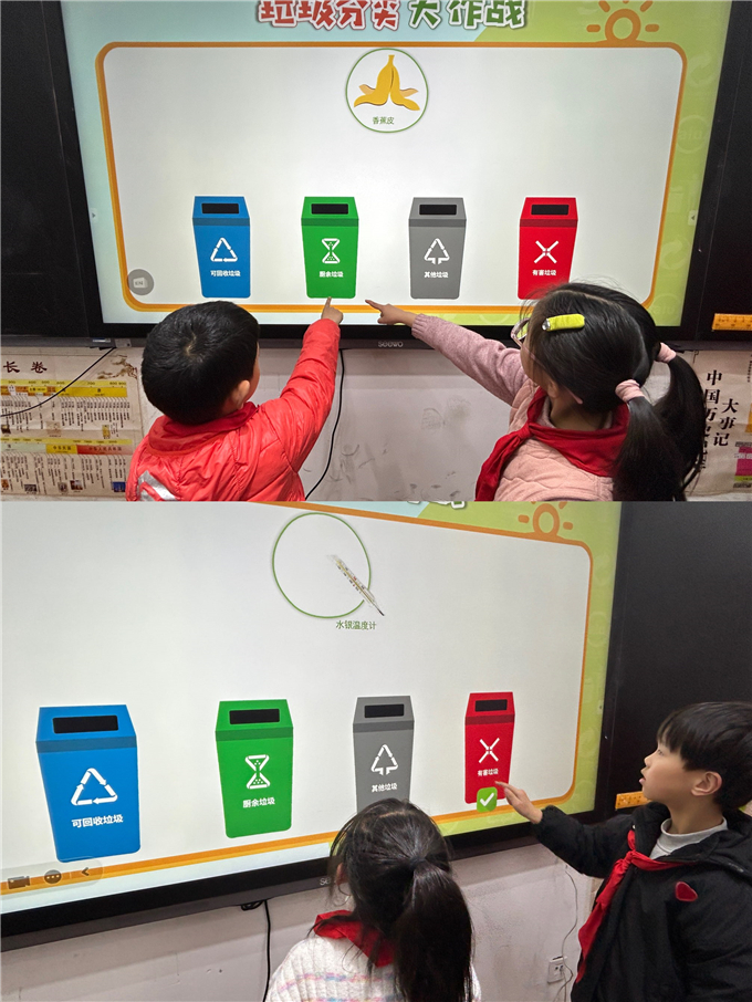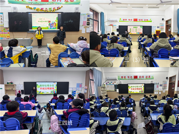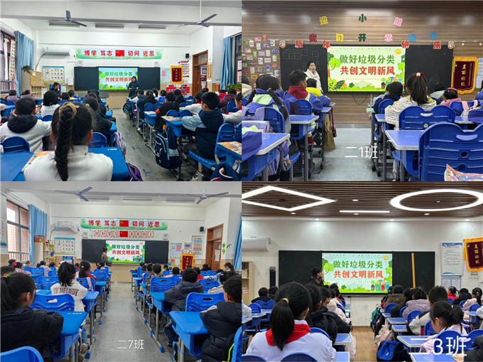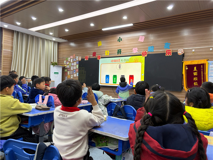 课堂之上,润物无声。各班级精心开展 “垃圾分类,从我做起” 主题班会,班主任们以生动有趣的讲解、直观清晰的图示、互动满满的问答,带领孩子们认识可回收物、厨余垃圾、有害垃圾、其他垃圾,拆解分类知识,讲解环保意义。从垃圾的归属到资源的循环,从校园的洁净到地球的守护,孩子们专注聆听、踊跃发言、积极思考,在轻松愉悦的氛围中,将垃圾分类知识熟记于心,让环保意识悄然萌芽。