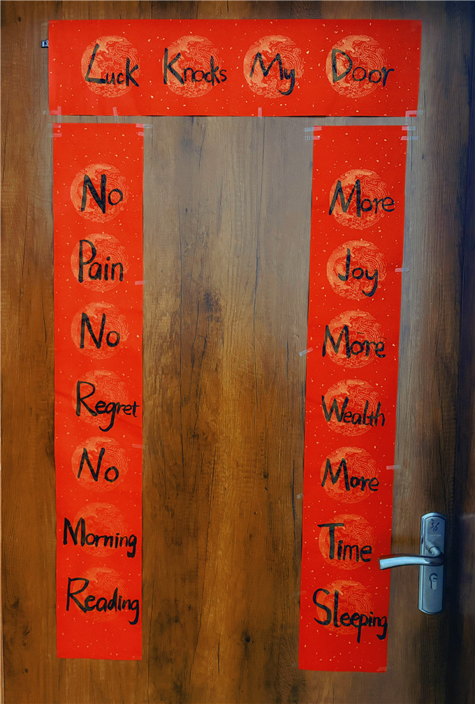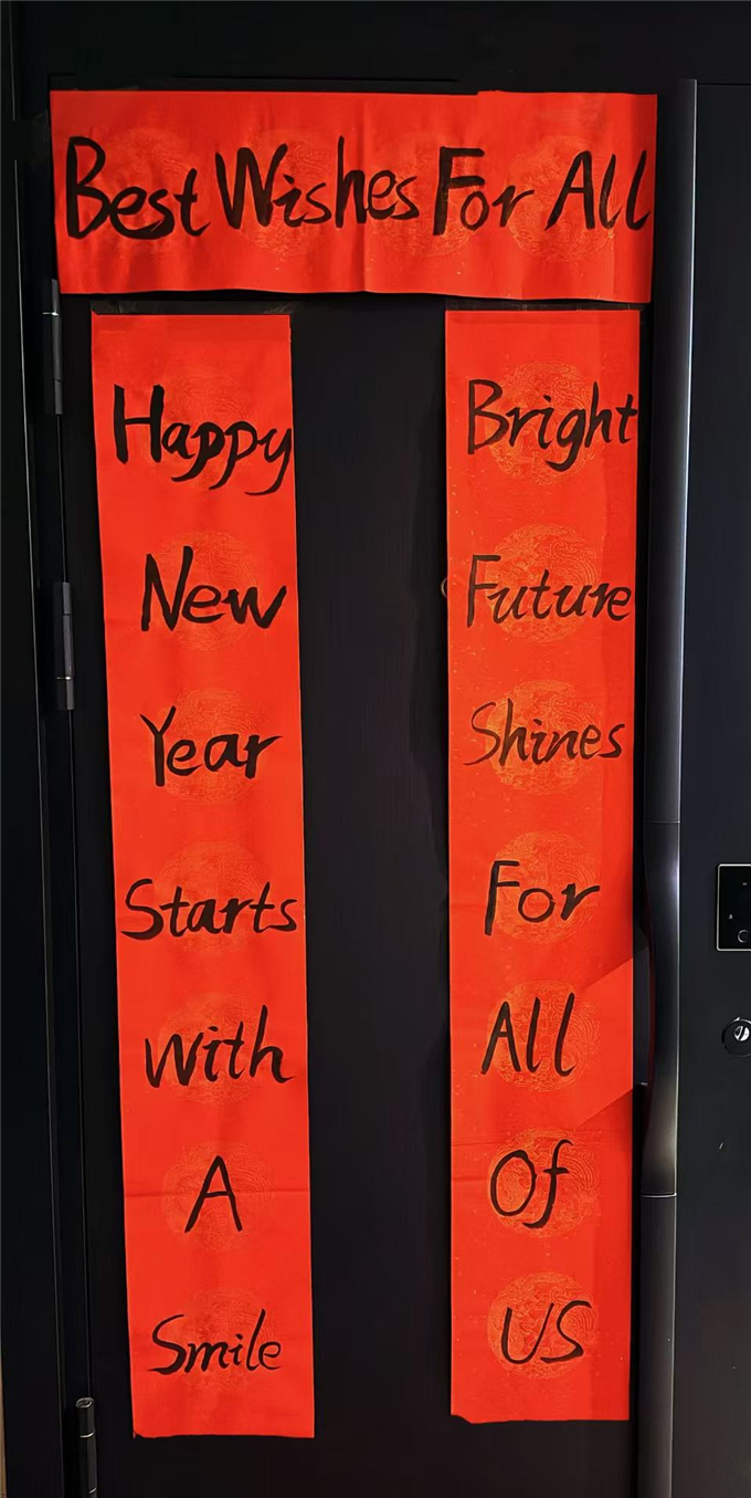 新春佳节之际,同学们以 “马年英文春联” 为载体,将传统年俗与英语创意结合。大家巧用简洁优美的英文词句,搭配新年祝福,一笔一画认真书写,创作出一幅幅年味十足、创意满满的英文春联。工整的书写、真挚的祝福,既展现了扎实的英语书写功底,又让传统文化在英语学习中焕发光彩,在笔墨间传递着对新年的美好期盼。