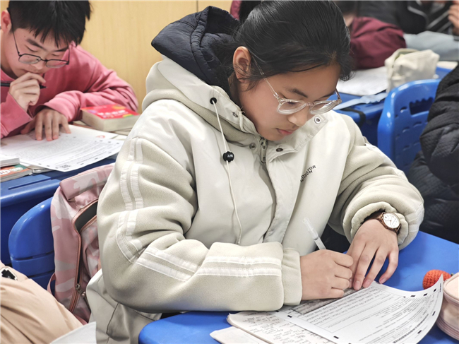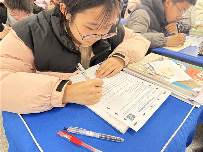 大赛现场,九年级学子们凝神思考、奋笔疾书,将日常积累的词汇、句型与写作技巧融入作答,认真完成英语写作任务。此次赛事采用统一命题、集中作答的形式,既为学生搭建了展示英语素养的平台,也帮助学校全面掌握学生写作学情,为后续精准教学提供依据。