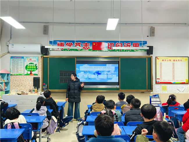 课堂上,志愿者用生动有趣的语言,向孩子们介绍水资源的重要性、我国水资源现状以及日常生活中的节水小知识。孩子们听得认真、积极举手提问,在轻松的氛围中明白了“节约用水,人人有责”。