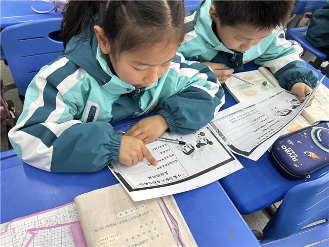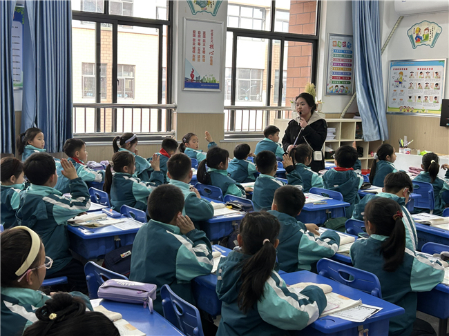 课堂伊始,崔静怡以 “字理识字” 点亮开篇。“大家猜猜这个字是什么?” 黑板上的 “食” 字引发了孩子们的好奇心。在崔静怡的引导下,孩子们发现 “食” 字上似器皿之盖、下如盛满食物之器,既读懂了汉字的造字智慧,更领会了 “民以食为天” 的文化内涵。随后,“小鬼当家:美食大狂欢” 的情境任务正式启动,四个层层递进的学习挑战,让孩子们在趣味互动中习得知识、提升能力。