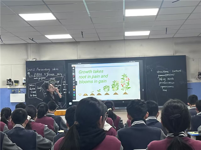 活动紧扣跨学科主题学习核心,以“成长的烦恼与收获”为载体,将英语语言学习与德育、语文、艺术等多学科素养培养深度融合。曹琪老师率先授课,她以课题研究理念为引领,围绕成长主题设定明确学习目标,将一般过去时、被动语态等语法知识与成长探究深度结合,设计时间线梳理、人物分析、烦恼探究、方法提炼、收获总结五大教学环节。课堂中融入德育学科的人际交往、情绪管理素养培养,引导学生从家庭、同伴、挫折等维度探讨成长问题,让学生在运用英语表达的同时学会理解他人、直面困难,实现语言能力与品格修养的双重提升。