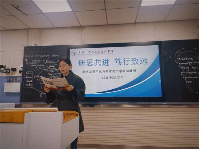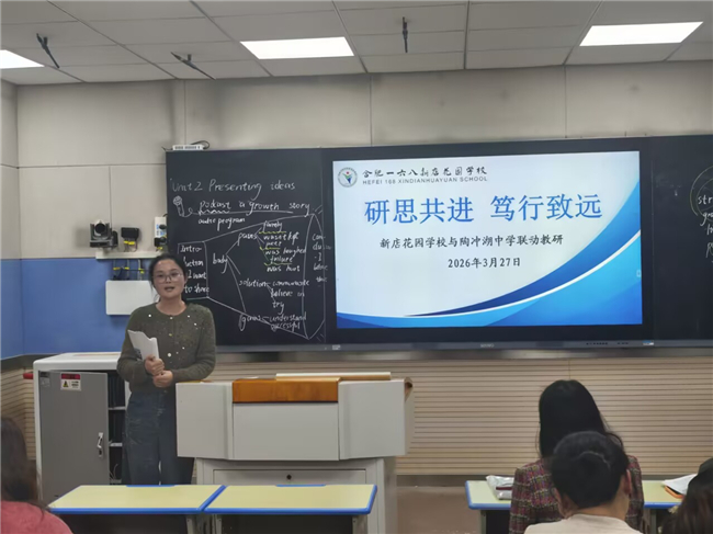 为深入推进《基于核心素养的初中英语跨学科主题学习设计与实践研究》课题落地,落实新课标下英语学科核心素养培养要求,探索跨学科主题学习的教学实践路径,近日,合肥一六八新店花园学校与一六八陶冲湖学校初中英语校际联动教研活动,在我校录播教室顺利开展。本次活动以八年级下册《Growing pains and gains》为主题,通过课例展示、专业点评的形式搭建校际交流平台,陶冲湖学校曹琪老师、新店花园学校胡冬雨老师带来两节精彩课例,陶冲湖学校宋美贵老师、周艳芳老师,新店花园学校教科室李雪梅主任、韩淳淳组长进行专业点评,两校初中英语教师共同参与本次教研。