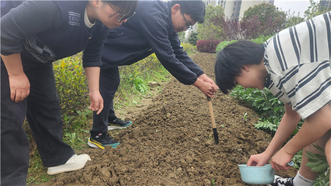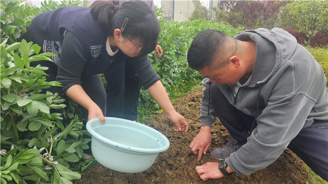 一颗颗饱满的向日葵种子被轻轻埋进肥沃的泥土,不仅埋下了对生命成长的期待,更承载着学子们逐梦前行的坚定信念与对未来的美好憧憬。在紧张的学业冲刺阶段,这场沉浸式劳动让同学们暂时放下繁重的课业,感受泥土的芬芳与劳动的快乐,在亲身实践中感悟生命从萌芽到生长的力量,舒缓身心压力,汲取成长力量。