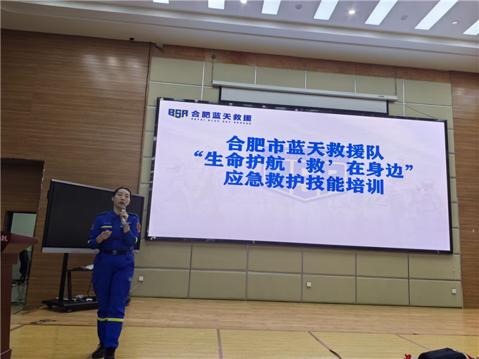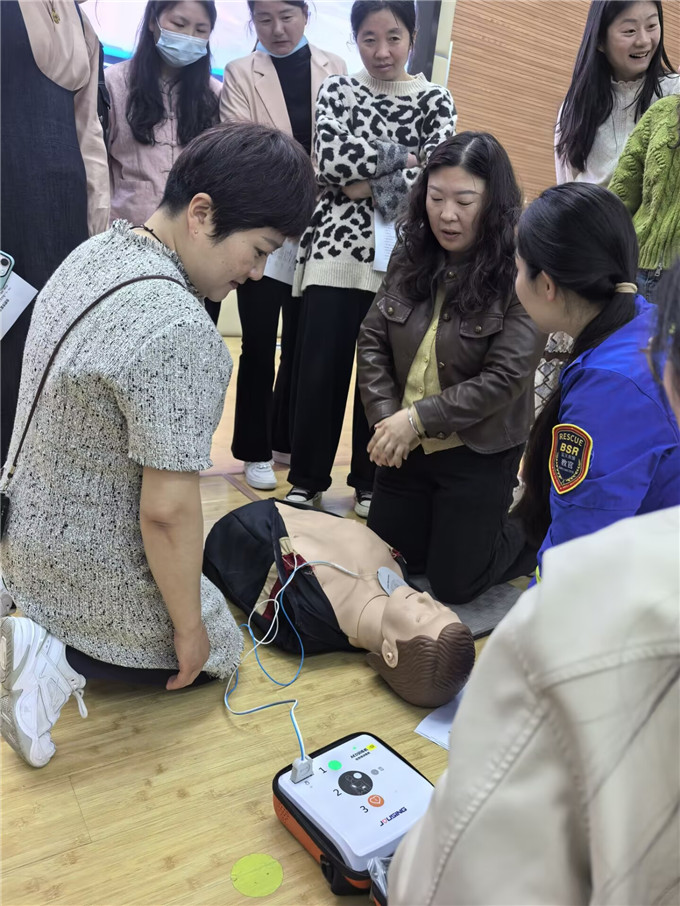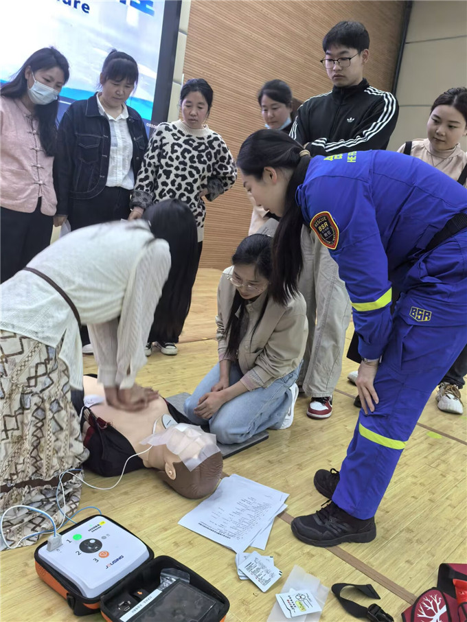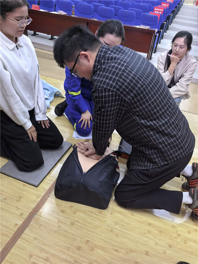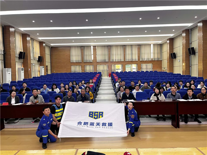 培训伊始,合肥蓝天救援队的教官结合校园突发场景,用通俗易懂的语言的和真实案例,系统讲解了心搏骤停“黄金4分钟”的急救理念,详细阐释了CPR与AED的核心作用、操作原理及适用场景。教官重点强调,校园是人员密集场所,教职工作为学生成长的守护者,掌握应急救护技能,能在突发意外时为学生争取宝贵的抢救时间,意义重大。