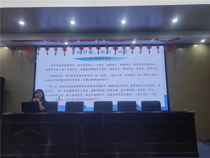 肖俊江结合丰富实践指出,班主任工作忙碌而辛苦,更是一门充满智慧的育人艺术,想要高效开展工作,必须找准关键、抓实重点,避免盲目忙碌,重点抓好五个方面:抓卫生,营造整洁有序的育人环境;抓纪律,构建稳定和谐的班级秩序;抓心理,守护学生身心健康发展;抓人际关系,培育团结友爱的班级氛围;抓家校沟通,凝聚家校协同育人合力。她用生动鲜活的案例故事,让管理理念更接地气、入脑入心。