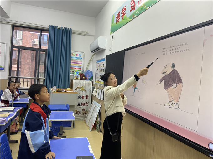 为迎接“世界读书日”的到来,深化书香校园建设,合肥一六八新店花园学校陶冲湖校区开展了一系列阅读活动。2026年4月20日上午,五(1)班的课堂上迎来了一位特殊的“老师”——国家心理咨询师、高级家庭教育指导师、合肥一六八陶冲湖中学教师张西岭。她为同学们带来了一堂别开生面的“绘本品读疗愈沙龙”课,主题为“悦读越成长,鼓励出奇迹”。此次活动不仅是一场生动的绘本阅读课,更是一次关于成长、肯定与鼓励的深刻心灵对话。