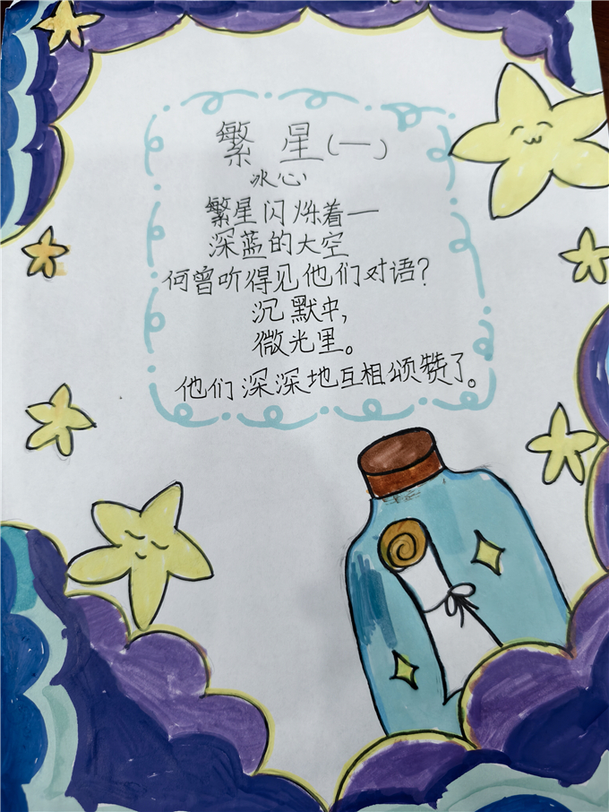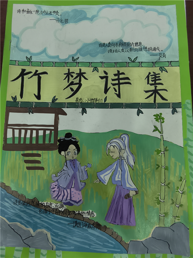 活动前期,同学们依托居家自主阅读与文学积累,精心打造专属个人诗集。大家或是摘抄经典诗词、现代童诗,或是原创童真小诗,将对生活的感悟、对家国的热爱、对成长的期许,都凝聚在一本本精致的诗集之中。每一本诗集都独具匠心,别致的封面、工整的书写、灵动的文字,尽显四年级学子的文学素养与童真巧思。