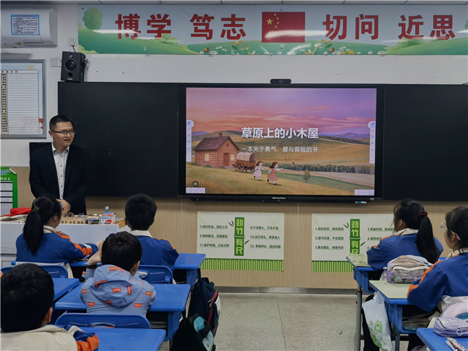 为深入推进书香校园建设,营造“爱读书、读好书、善读书”的浓郁氛围,搭建家校协同育人桥梁,4月21日,合肥一六八新店花园学校陶冲湖校区四年级5班开展“家长进课堂”阅读分享活动。本次活动特邀黄清池爸爸走进课堂,以经典名著《草原上的小木屋》为载体,带领同学们在书香中感悟勇气、亲情与成长的力量。