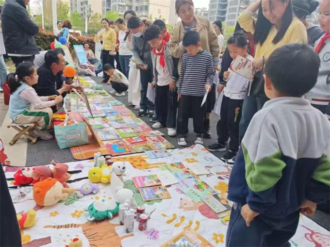 活动现场内容丰富、形式多样,集阅读、公益、科普与互动于一体,为学子们带来一场别开生面的文化体验。在图书集市环节,来自周边幼儿园的 “萌宝” 们化身小摊主,精心布置摊位、摆放绘本与读物,学生们也积极参与书籍交流,在互动中分享阅读乐趣,传递书香能量。