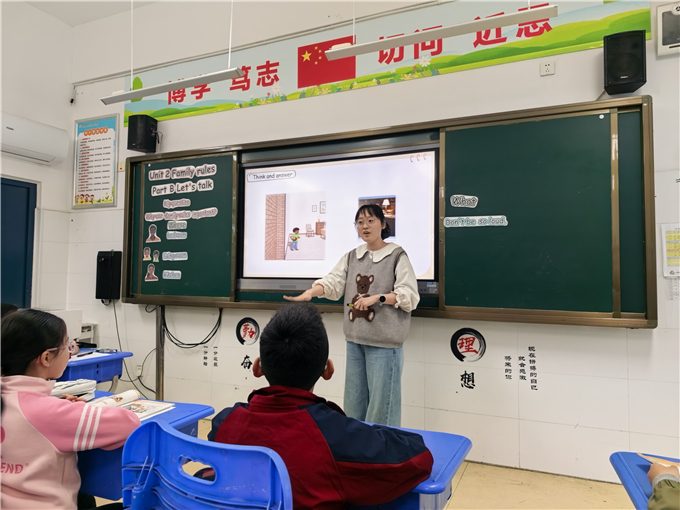 4月22日,陶冲湖校区卢璐老师来到一六八新店花园学校,在四六班开展区际小学英语公开课磨课活动,授课内容为人教PEP四年级下册Unit 2 Family Rules B Let's Talk。