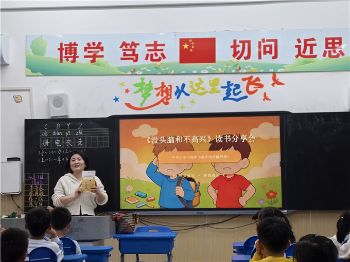 为搭建家校协同育人桥梁,激发低年级学生的阅读兴趣,营造浓厚的班级书香氛围,4月17日,合肥一六八新店花园学校陶冲湖校区一(3)班开展了一场别开生面的家校共育读书分享会,本次活动由方艺锦妈妈主持,带领孩子们走进经典儿童文学作品《没头脑和不高兴》的奇妙世界。
