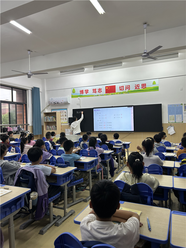 活动伊始,教师刘炫在三(6)班带来了《除法的口算和估算》公开课。课堂上,教师刘炫以数的组成与表内除法为切入点,理清算理,再通过平均分的习题自然引入除法运算,引导学生在计算中灵活运用数的组成和表内除法的知识进行口算。在巩固环节,教师刘炫设计了丰富的课堂习题,帮助学生深化对除法口算的理解;随后,又在口算基础上巧妙过渡到除法估算教学,层层递进,逻辑清晰。教师循循善诱,学生们积极思考,展现出良好的学习状态。