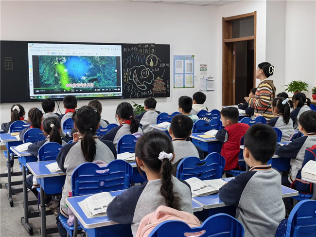 10月29日下午,合肥一六八新店花园学校陶冲湖校区的二年级语文教师王玉洁以部编版语文课文《日月潭》为载体,依托教学课件的丰富资源,打造了一堂融合美景、历史与生态的沉浸式公开课。